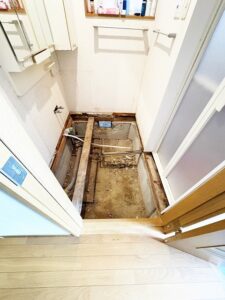 洗面室の床を一部解体して調査を行いました。