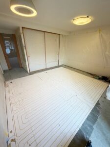 床暖房のパネルを傷つけないよう慎重に作業を進めていきます。